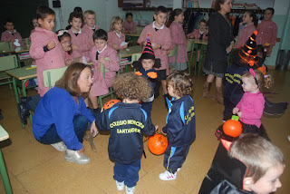 Y la mañana ya acaba. Oímos a nuestras familias esperando en la puerta, así que sólo nos queda prepararnos para salir... Con todas nuestras cosas y con unas bolsas que nos prepararon las "profes" para llevarnos a casa las "chuches" que conseguimos con nuestro "Truco o Trato".