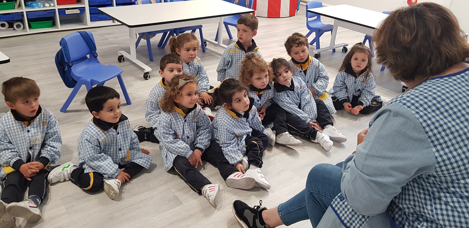 Este año, aunque en el colegio, tampoco podemos mezclarnos entre clases (las "profes" de los distintos cursos tampoco) por eso, para contar todas juntas (incluidas nuestras "profes" en prácticas) un cuento, hemos vuelto a recurrir al vídeo.